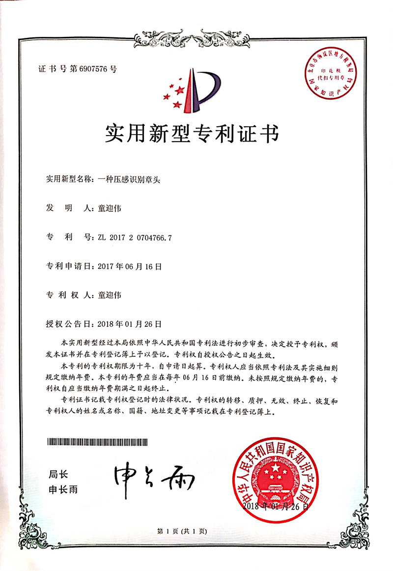 一種壓感識(shí)別章頭