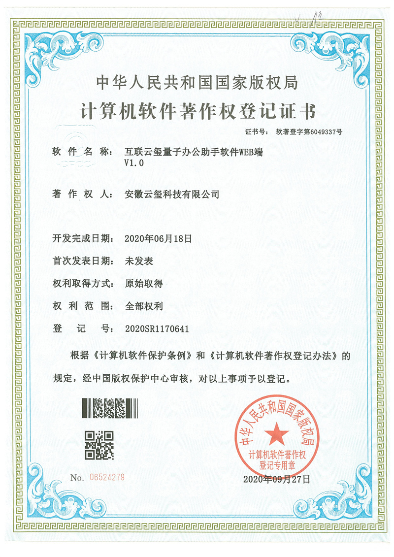云璽量子是合肥市量子信息產(chǎn)業(yè)重點(diǎn)企業(yè),國(guó)家信創(chuàng)工委會(huì)成員企業(yè),中國(guó)信創(chuàng)500強(qiáng)企業(yè)。主營(yíng)業(yè)務(wù)包括量子安全智能印簽、量子安全智能辦公、量子安全云服務(wù),為政企客戶(hù)提供量子安全整體解決方案。