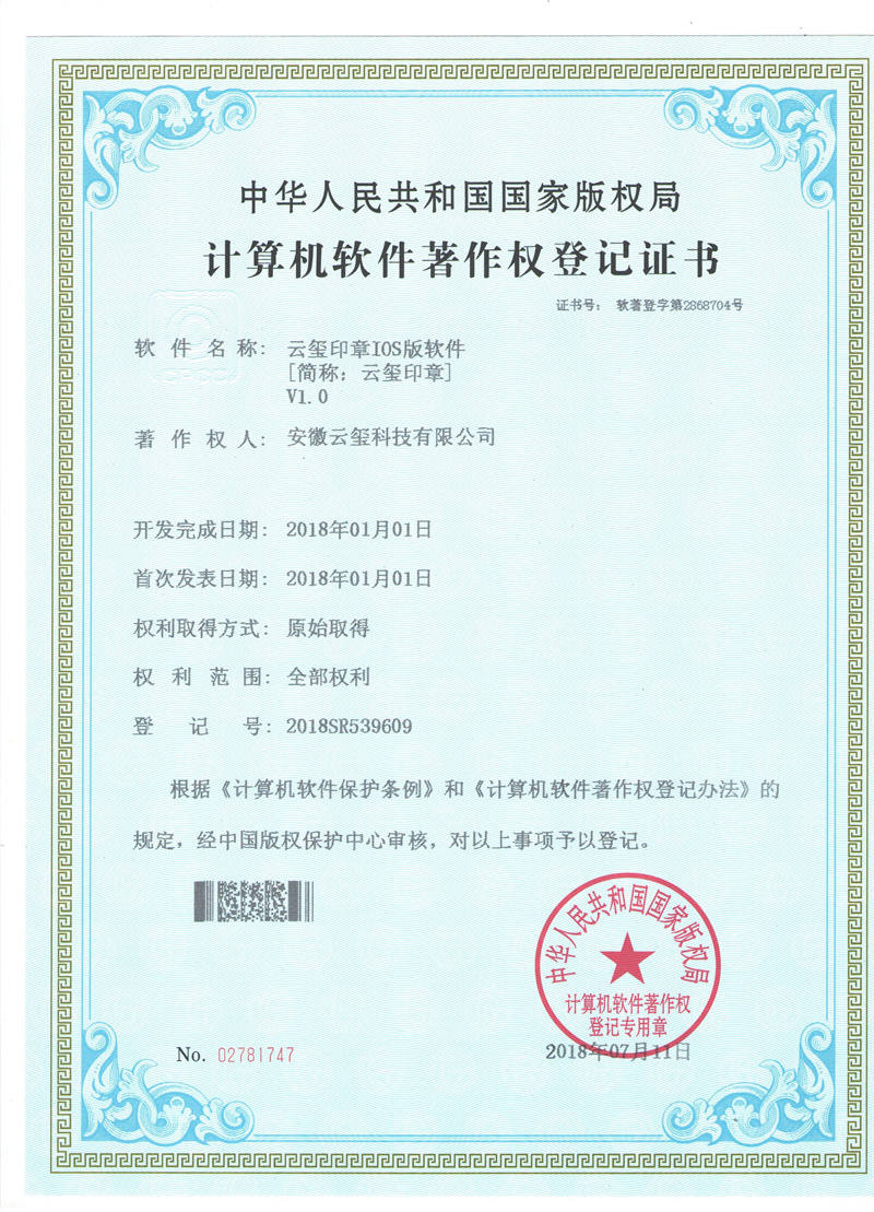 云智能印章軟著(IOS)