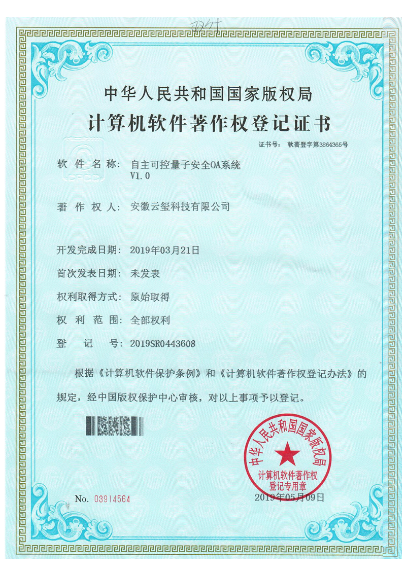 安徽云璽量子科技有限公司是合肥市量子信息產(chǎn)業(yè)重點(diǎn)企業(yè),國(guó)家信創(chuàng)工委會(huì)成員企業(yè),中國(guó)信創(chuàng)500強(qiáng)企業(yè)。主營(yíng)業(yè)務(wù)包括量子安全智能印簽、量子安全智能辦公、量子安全云服務(wù),為政企客戶(hù)提供量子安全整體解決方案。