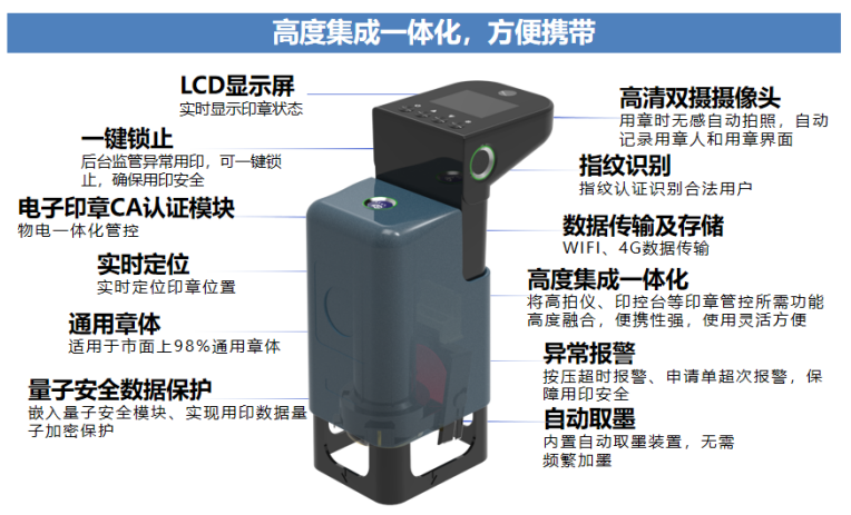 安徽云璽量子科技有限公司針對企業(yè)印章私用亂象,研發(fā)了云璽云智能印章,該產(chǎn)品兼容市面上98%的主流實(shí)體印章,功能齊全、高度集成一體化、便攜性強(qiáng)。