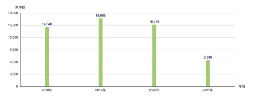 圖1.2018~2021年對應案件數據圖(來源:網絡)