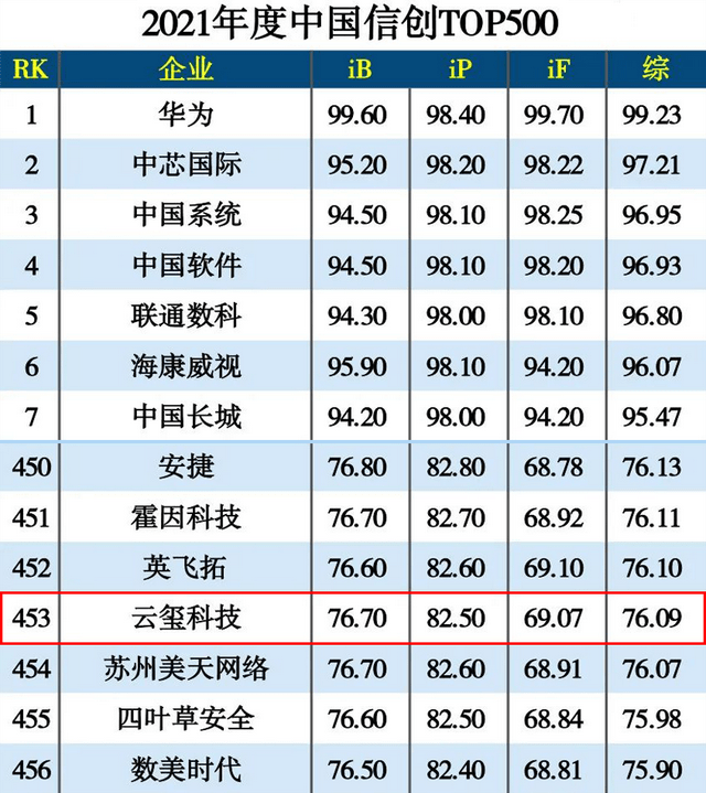 圖1、云璽2021中國信創(chuàng)500強(qiáng)排行榜單名次(來源:互聯(lián)網(wǎng)周刊)
