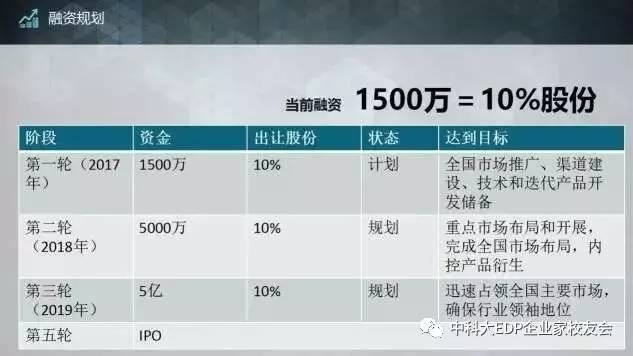計劃融資1500-2500萬。在全國范圍內(nèi)的重點地區(qū)和城市,深入推廣,打造和穩(wěn)固公司在創(chuàng)新市場和領域的領導地位。規(guī)劃3年時間,引 領行業(yè)變革,確立市場領導地位,實現(xiàn)銷售突破20億元。