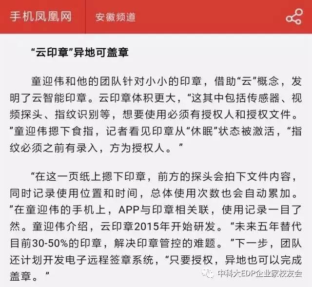 近日,由中科大先研院持股孵化企業(yè)安徽云璽科技研發(fā)的項目——互聯(lián)網(wǎng)云智能印章項目,成功入圍國務院國資委央企熠星雙創(chuàng)大賽決賽,并最終進入熠星雙創(chuàng)平臺資本對接大名單。