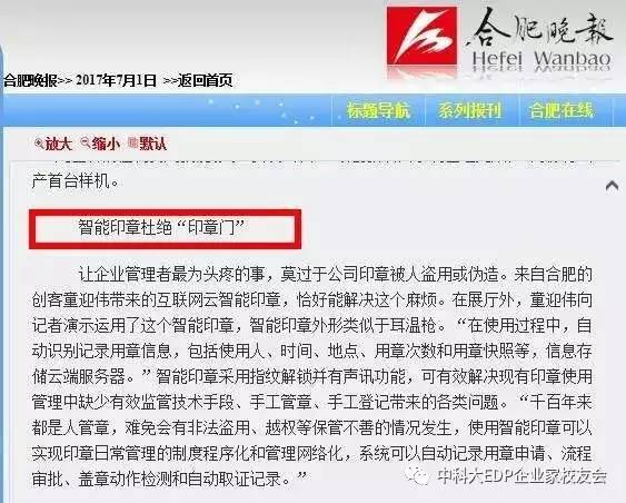 2016年11月,互聯(lián)網(wǎng)云智能印章項目參加國務院國資委央企熠星雙創(chuàng)大賽,2017年5月,經(jīng)過四輪遴選,項目最終進入國務院國資委熠星雙創(chuàng)平臺資本對接名單。