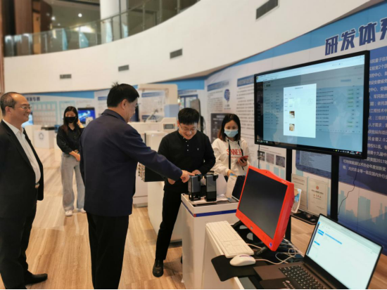 在先研院創(chuàng)新成果展廳,錢(qián)巖松部長(zhǎng)一行參觀了云璽科技量子安 全云辦公系列產(chǎn)品。認(rèn)真聽(tīng)取云璽科技董事長(zhǎng)童迎偉關(guān)于公司自主創(chuàng)新、研發(fā)的“自主可控量子安 全云辦公系統(tǒng)”新技術(shù)產(chǎn)品特點(diǎn)介紹,工作人員現(xiàn)場(chǎng)演示了自主可控量子安 全一體機(jī)運(yùn)行量子安 全辦公OA的過(guò)程。