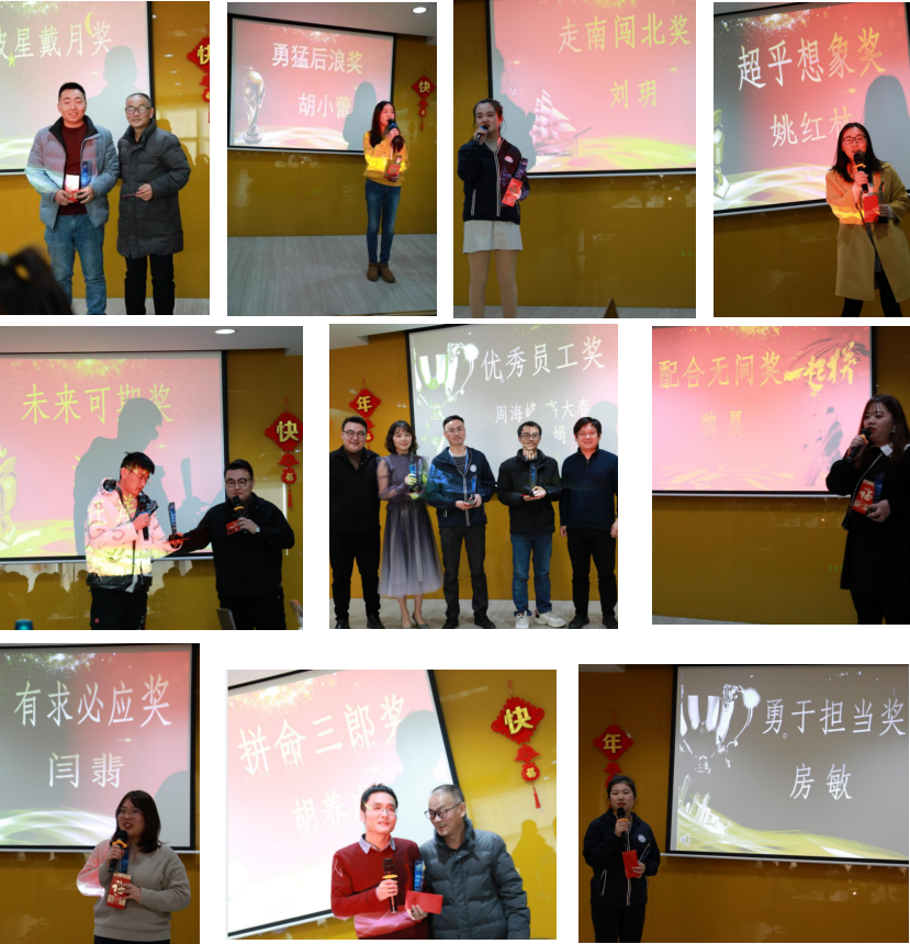 云璽的發(fā)展離不開每一位員工的辛勤努力,年會(huì)的第二部分,就是對(duì)本公司2020年度杰出優(yōu)秀員工做出表彰和頒獎(jiǎng),以激勵(lì)其勇往直前,更上一層樓!本次獎(jiǎng)項(xiàng)的設(shè)置豐富多樣,有“未來可期獎(jiǎng)”、“勇猛后浪獎(jiǎng)”、“披星戴月獎(jiǎng)”等等,每個(gè)方向的努力都值得被肯定和關(guān)注,由王總、魯總、鮑總、鄧教授、張總、童總等領(lǐng)導(dǎo)(排名不分先后)對(duì)不同獎(jiǎng)項(xiàng)進(jìn)行頒獎(jiǎng)致辭。