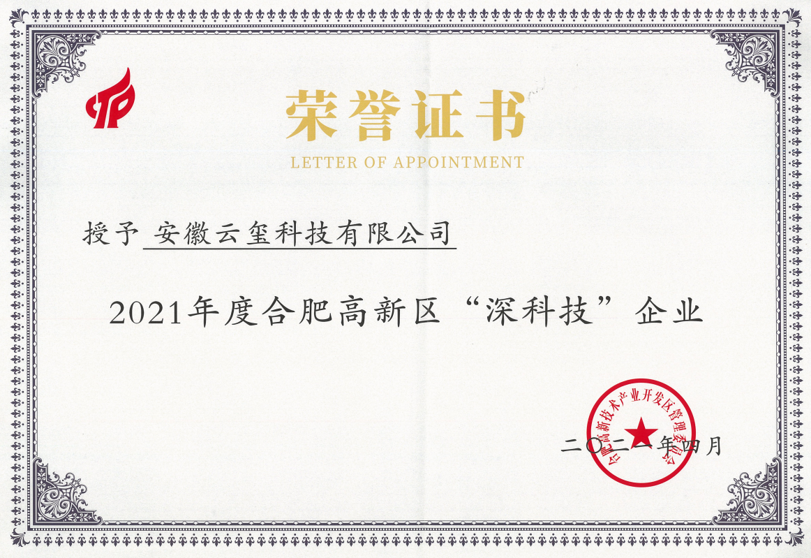 熱烈祝賀我司被評為2021年度合肥高新區(qū)深科技企業(yè)