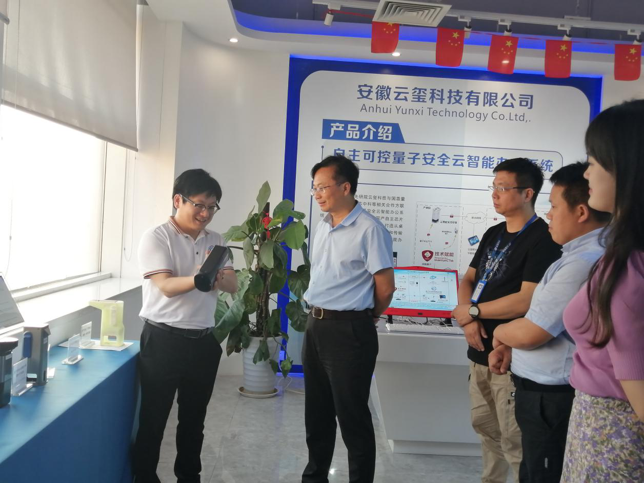 6月29日,安徽省經(jīng)信廳總經(jīng)濟(jì)師潘峰、安徽省經(jīng)信廳產(chǎn)業(yè)信息化副處長宮純文蒞臨安徽云璽科技指導(dǎo)交流。公司董事長童迎偉、執(zhí)行總經(jīng)理鮑習(xí)宏熱情接待,詳細(xì)匯報了量子安全技術(shù)創(chuàng)新應(yīng)用情況和產(chǎn)業(yè)化進(jìn)展。未來,云璽科技將始終如一,致力于量子安全技術(shù)創(chuàng)新和應(yīng)用的發(fā)展,為政企客戶打造更好更安全的量子安全…