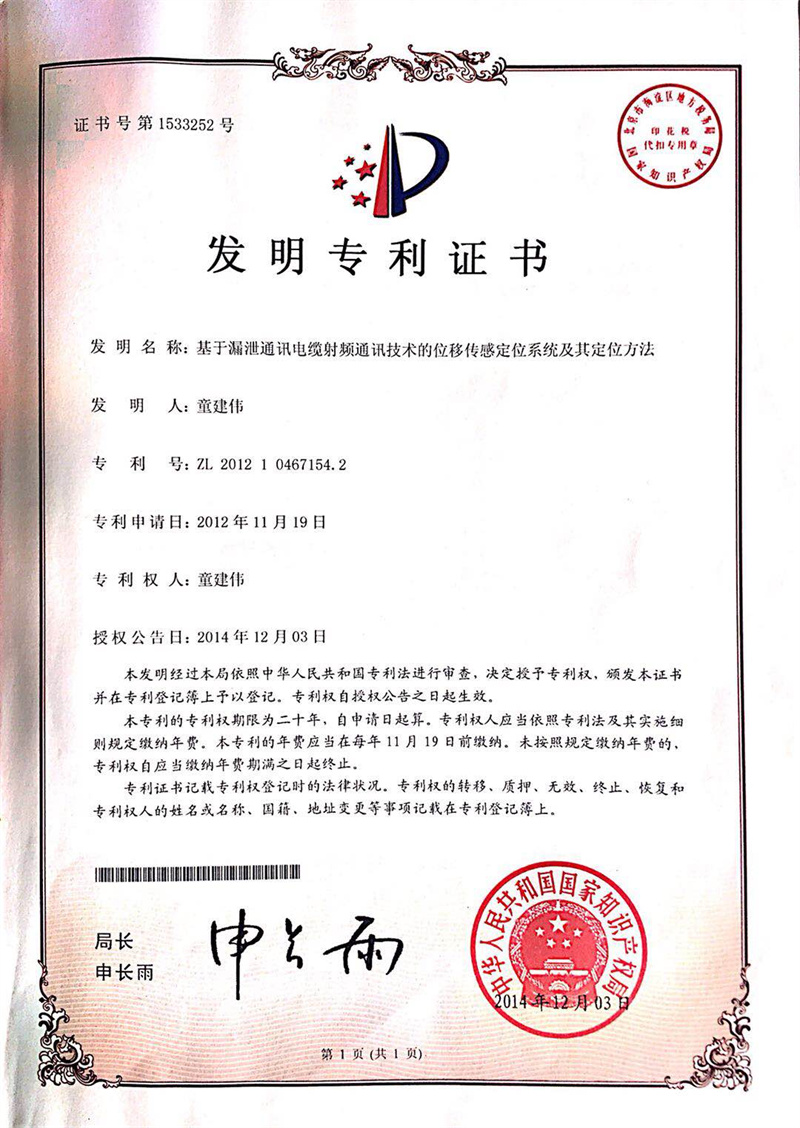 基于漏泄通訊電纜射頻通訊技術的位移傳感定位系統(tǒng)及其定位方法
