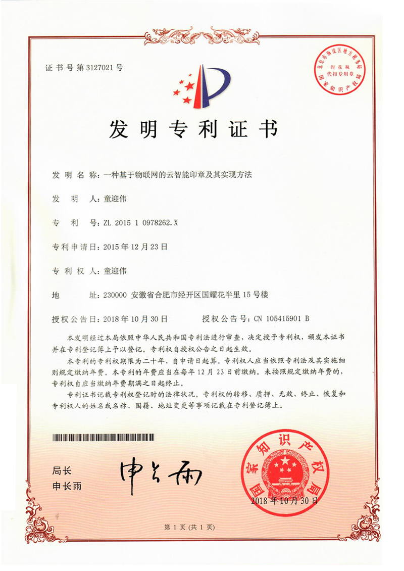 一種基于物聯(lián)網的云智能印章及其實現(xiàn)方法